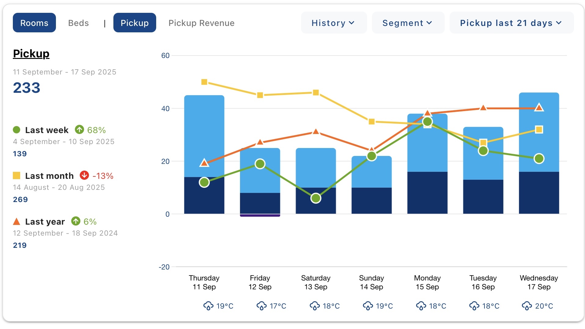 Thanks to RevControl’s advanced forecasting technology, you can instantly see how demand is evolving. Whether conducting a quick internal analysis or presenting results during your monthly meeting, the dashboard seamlessly switches between multiple data points and room types.