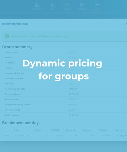 Dynamic pricing has become the standard approach for many accommodations. RevControl automatically looks at changing reservation data and market activity. But once a group request comes in, finding the right price becomes more complex.