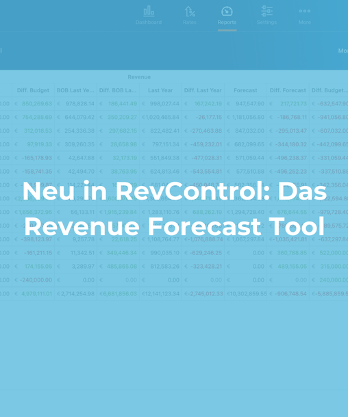 Mit dem Revenue Forecast Tool verfügen Sie über die richtigen Werkzeuge, um Ihr Business on the Books zu analysieren und die Ergebnisse mit Budgets sowie historischen Daten zu vergleichen. Dadurch haben Sie noch mehr Kontrolle über Ihr Revenue Management. Haben Sie Fragen zu diesem neuen Report oder möchten Sie mehr über RevControl erfahren? Unser Sales Team hilft Ihnen gerne weiter.