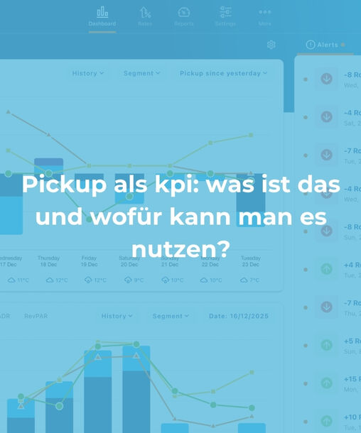 Pickup ist ein starker Indikator, aber nicht der einzige Faktor. In RevControl berücksichtigen wir bei der Preisberechnung zum Beispiel auch Wettbewerbsdaten, On the Books Reservierungen und weitere KPIs. Möchtest du sehen, wie das für deine Unterkunft aussieht? Buche eine Demo über den orangefarbenen Button unten.