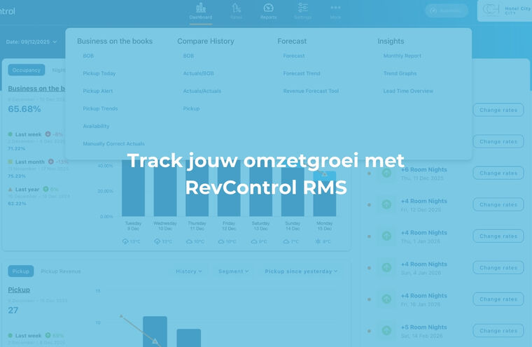RevControl is het meest gebruiksvriendelijke revenue management systeem op de markt. Een van de beste voorbeelden daarvan is ons duidelijke en complete dashboard. Dit bestaat uit vijf onderdelen die jou in een oogopslag helpen om de juiste beslissingen te nemen. In deze blog nemen we je mee langs alle onderdelen.