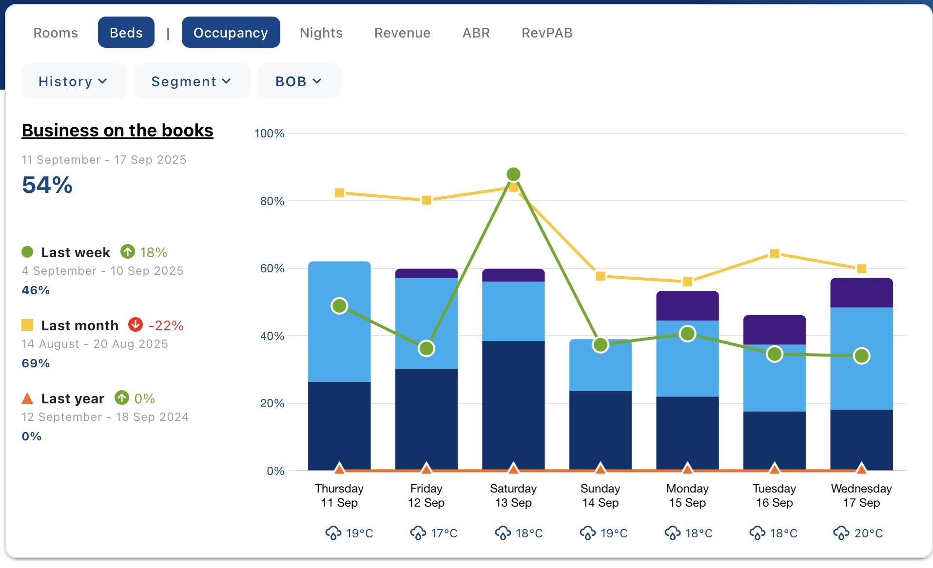 Wat RevControl echt uniek maakt, is het vermogen om onderscheid te maken tussen kamer- en bedprognoses. Hostels staan vaak voor de uitdaging om de bezettingsgraad van verschillende kamertypes en de beschikbaarheid van bedden zorgvuldig in balans te brengen. RevControl is speciaal aangepast om hostelhouders diepgaand inzicht te geven in zowel de kamers als de bedden. Binnen het gehele RMS kunnen deze twee elementen afzonderlijk worden beheerd, waardoor je zorgt voor nauwkeurige prijsstelling en een helder beeld van marktfluctuaties. Het doel is om de omzet te optimaliseren door de bezetting, de vraag en de prijsstrategieën voor zowel individuele bedden als privékamers in evenwicht te brengen.